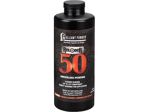 This new powder is intended for long-range rifle shooters using 50-caliber rifles. Alliant Reloder 50 Smokeless Gun Powder gives lot-to-lot consistency and a density designed exclusively for 50-caliber use, with greater velocity and the potential to burn cleaner (with less residue).