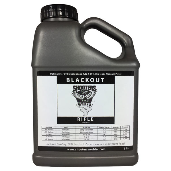 Ballistic findings reveal that Shooters World Blackout D063-02 Smokeless Gun Powder is suitable for both pistol and rifle cartridges with a near straight-walled cartridge.